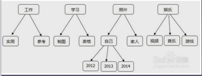 按文件类型归类文件:Windows 操作系统默认的分类是:我的文档、我的音乐、我的视频……这样按照文件类型归类适合个人电脑,而不是工作电脑。工作电脑里可能 90% 的文件都在「我的文档」里面,所以这样分类就失去了意义
