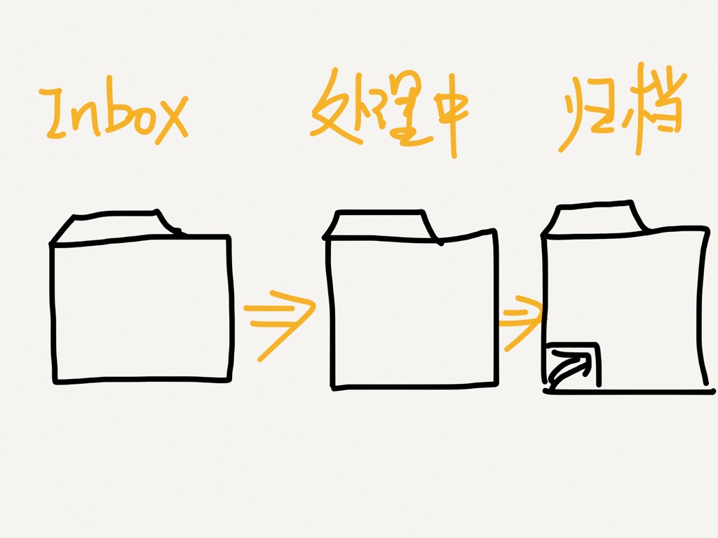 - Inbox:各个渠道来的临时文件,或者需要处理还未处理的文件,都放到 Inbox 文件夹里,每天下班前清理一次这个文件夹,当开始着手处理这件事时,就挪到「进行中」文件夹;