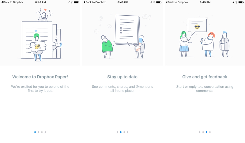 Dropbox 的官网从很早开始就以插画而为大家所知。如果你仔细观察,你会发现他们的插画非常风格化,而且与当前的信息结合得非常好。相比 Dribbble 这类网站上的「飞机稿」,这些有故事、有主题的插画则更有意思。